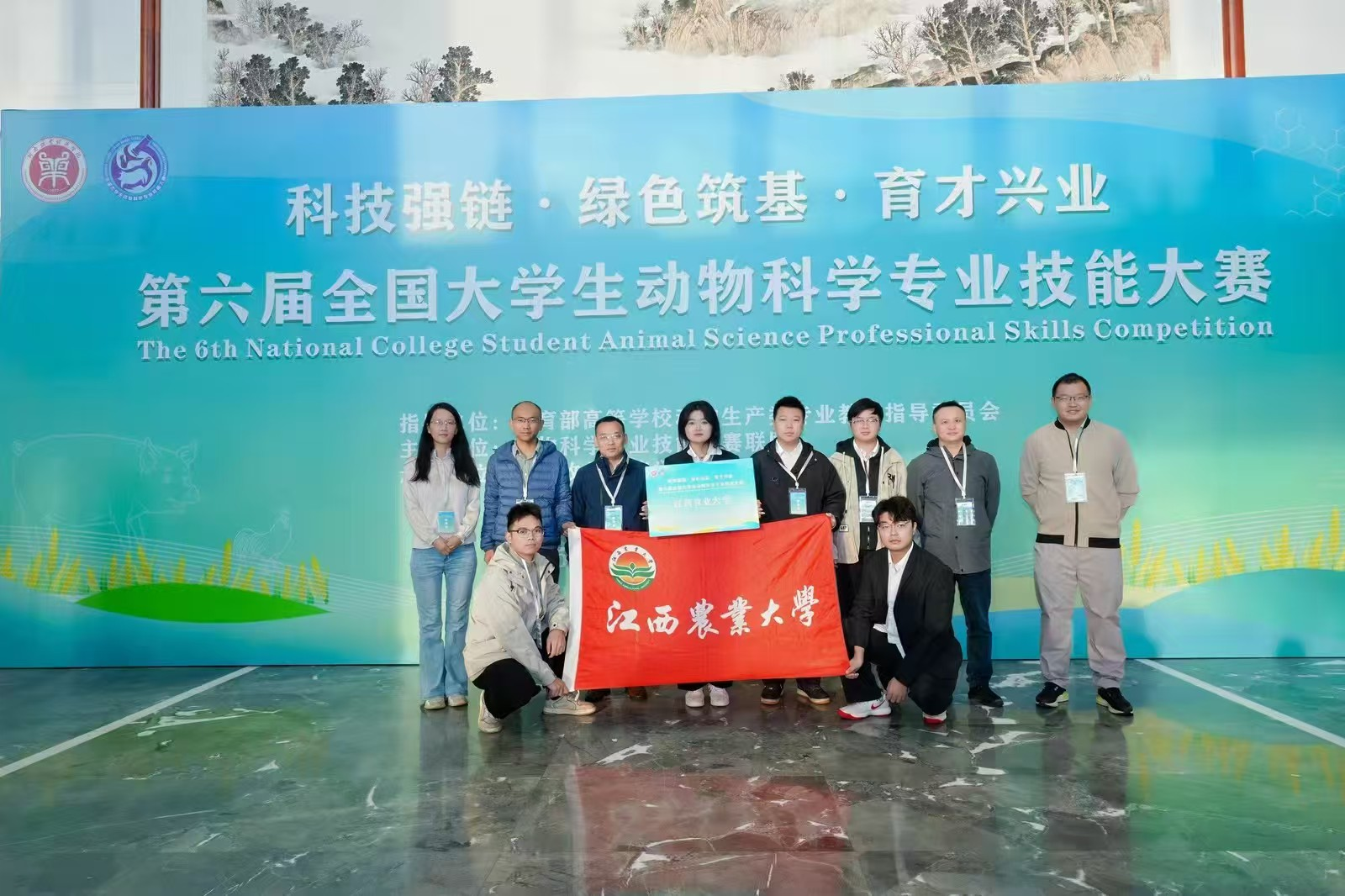 近日,由教育部高等學校動物生產類專業教學指導委員會指導、動物科學專業技能大賽聯盟主辦、河南牧業經濟學院承辦的第六屆全國大學生動物科學技能大賽在河南省鄭州市舉行。我校派出由動物科學技術學院黨委書記王志發與動物科學專業負責人黎觀紅為領隊教師,臧一天、李艷嬌、陳彪和周華為指導教師,謝雨農、梁建輝、王子坤、黃廷逸和姜宇彤等5位同學組成的代表隊參加比賽。經過緊張而激烈的角逐,我校代表隊在比賽中表現優異,最終榮獲團體一等獎、項目二單項一等獎。