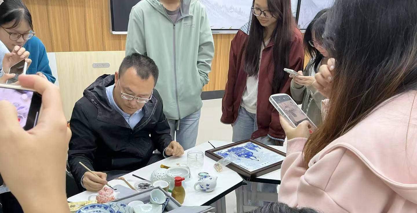 徐國華帶著精心準(zhǔn)備的瓷器藏品登上講臺,瞬間吸引了同學(xué)們的目光。他結(jié)合學(xué)習(xí)習(xí)近平總書記考察景德鎮(zhèn)時的重要講話精神,從瓷器的起源講起,分析千年窯火何以綿延不絕,介紹景德鎮(zhèn)陶瓷文化的傳承發(fā)展及其在中外文化交流中的重要作用。他還結(jié)合自身陶瓷作品的創(chuàng)作,展示其中蘊(yùn)含的文化魅力。