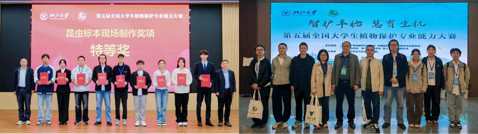 第五屆全國大學生植物保護專業能力大賽于11月7日至9日在浙江大學舉行,我校農學院推薦參賽的10個項目全部獲獎,其中特等獎3項,一等獎1項,二等獎3項,三等獎3項,并榮獲團體二等獎。我校師生以扎實的專業基礎知識、熟練的實驗操作技能、突出的創新實踐能力、深厚的學農愛農情懷獲得了業界同行和專家的認可。