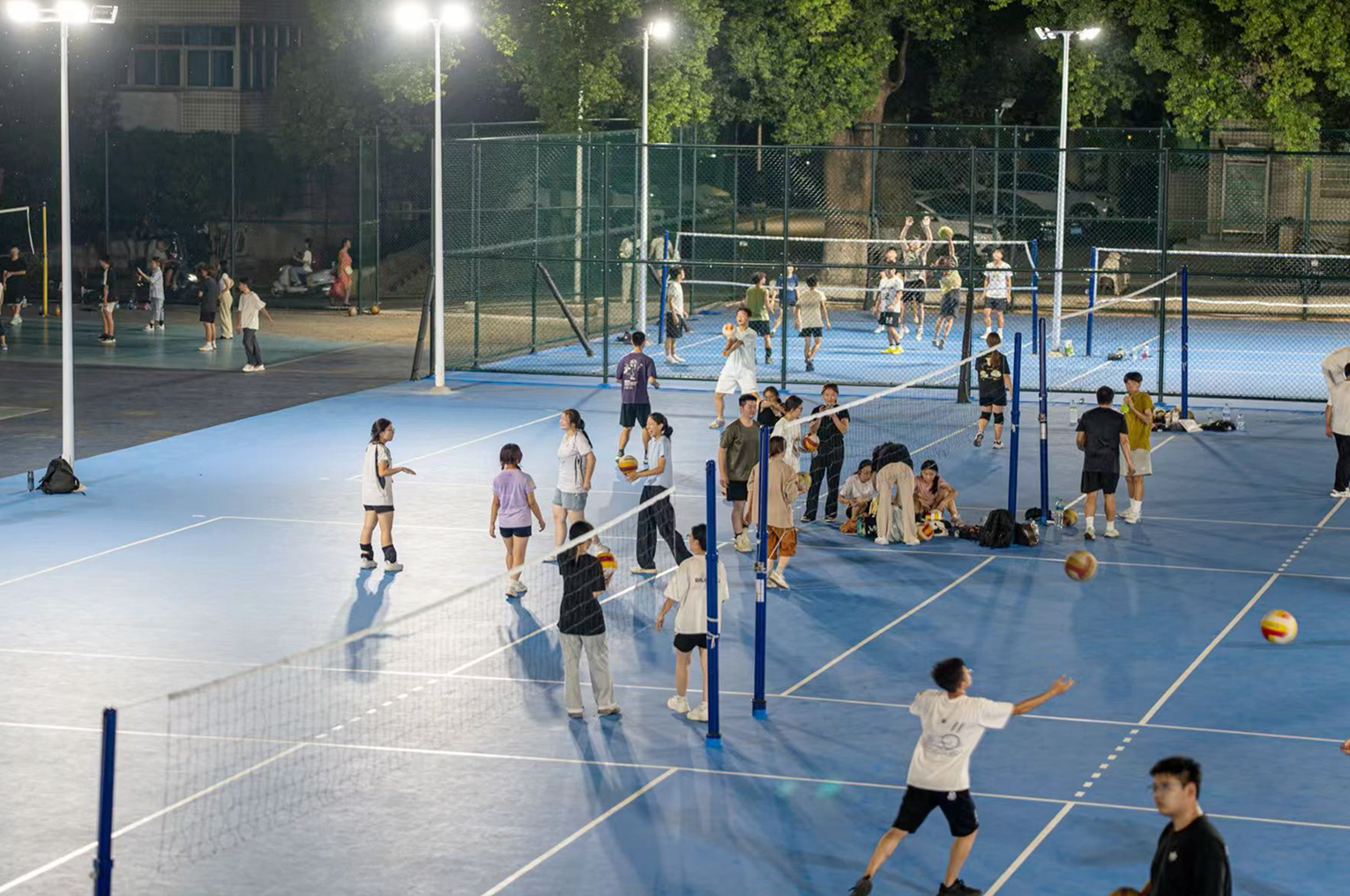 體育是重要的育人方式,運動環境是重要的育人場所。改造后的南北區籃排球場,保持了綠樹掩映的畫面美感,球場周邊增加了健身區、增加了燈光、懸掛了體育運動標語。通過套線方式,增設了匹克球場,實現“一場多用”的智慧運行模式,滿足師生體育運動多元化需求。