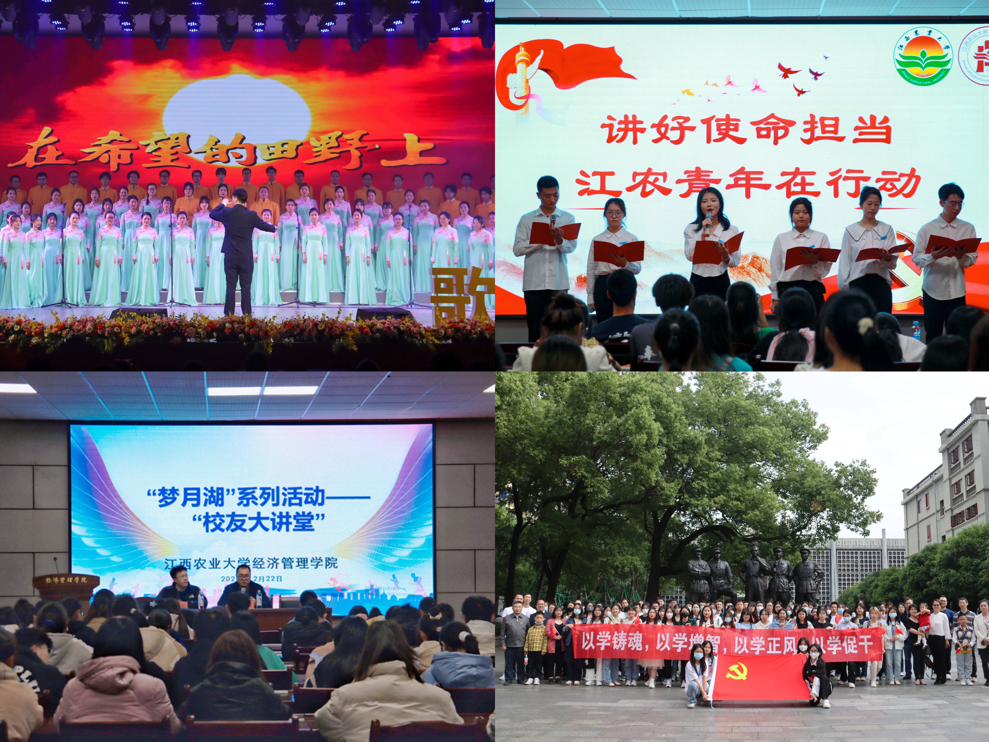 學院黨委堅持以習近平新時代中國特色社會主義思想為指導,持續加強黨的建設,為學院高質量發展提供政治保障,實現黨建工作與業務工作“雙提升”。學院立足院情,創建了“經益求‘金’”黨建品牌,落實“雙聯系”制度,成立教師黨員先鋒崗,組織黨員教師為學生提供學業輔導、升學指導,形成師生同向發力的良好循環;提升“雙融雙育”、“雙創”“歌詠黨課”等活動開展實效,進一步打造學院黨建品牌建設的“金字招牌”;成立了“金種子宣講團”,在學生、社區中開展黨的創新理論宣講活動;深入開展“夢月湖”系列分享活動,至今已開展講座40余次,形成了“五大模塊、四方聯動、兩個提升”的師生“雙育”新模式,在黨建引領、團學導航、朋輩教育等方面取得了良好的教學育人效果。學院黨員教師在社會服務上積極獻言建策,智庫報告先后17次獲得省領導及相關部門的肯定性批示;學院教師入選江西省宣傳思想文化青年英才,教師黨員獲江西省高校“最美輔導員”、“全省優秀共青團干部”、“贛鄱時代先鋒”等稱號;“緣來有你”工作室獲省級輔導員工作室立項,一批學生黨員獲得“江西青年五四獎章”、江西省自強之星、江西省“最美大學生”、江西省研究生“十佳實踐之星”提名、江西省優秀共青團員等眾多榮譽。