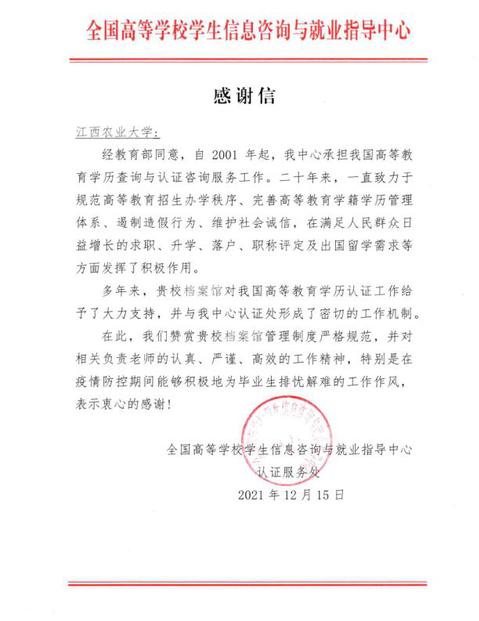 以滿足師生校友的檔案利用需求為根本出發點,不斷提升師生校友的查檔體驗。借助互聯網技術推動檔案服務提質增效,“讓數據多跑路、群眾少跑腿”成為檔案利用服務的新常態。新冠肺炎疫情防控期間,檔案館開通預約查檔、遠程查檔、代查檔案服務,解決廣大師生及校友“急難愁盼”問題,實現了檔案利用者足不出戶在線申請查閱學籍檔案的目標,工作得到廣泛好評。與此同時,為廣大教職工職稱評審、房產公證等關乎切身利益的民生問題,提供優質高效服務。在學校重大活動中發揮檔案資政作用,檔案館先后為省委巡視、專項審計、學歷核查、人事檔案專審、三家村搬遷、老舊小區改造、土地房產清查、省一流學科第三方績效評價等專項工作提供檔案查閱,發揮檔案不可替代的憑證作用。五年來,檔案館共提供線上線下檔案利用服務15100余人次,提供檔案查借閱16648卷。因出色完成相關工作任務,2021年學校收到教育部全國高等學校信息咨詢與就業指導中心的感謝信,2022年度學校獲評江西省檔案館館藏到期文書檔案開放復核先進單位。