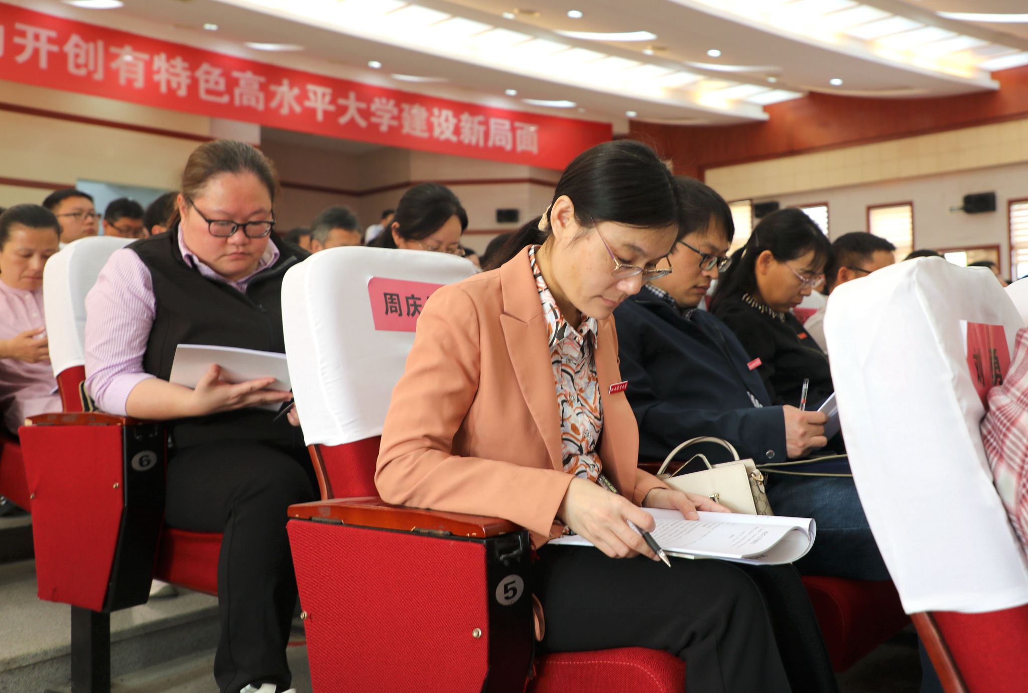 黃路生在閉幕式上發表講話,從黨紀學習教育扎實開展、黨建固本強基持續推進、立德樹人工程深化實施、黨管干部人才堅實有力、強農興農優勢顯著提升、民生福祉工程深入人心等六個方面,充分肯定了2024年的工作成績。就抓實抓細2025年重點任務,黃路生提出四點要求:一是深入學習抓落實。要學習新思想提高思想認識,堅持用習近平新時代中國特色社會主義思想武裝頭腦、堅定信念、引領行動;學習新知識提升本領能力,把學習當做一種興趣愛好、一種生活方式、一種行為習慣,樹立學習的態度、堅持學習的行動。二是對標政治抓落實。要扎實推進黨的建設,持續擦亮“金扁擔”黨建品牌,加大黨建“雙創”攻堅行動力度,推進黨建與業務工作深度融合;壓實意識形態責任,引導師生對學校工作形成正面認識,引導師生敢于主動發聲、正確發聲;加強立德樹人,持續加強思政課程和課程思政建設,引導青年大學生堅決聽黨話、跟黨走。三是聚焦重點抓落實。要扎實編制“十五五”規劃,堅持底數要清、標桿要明、措施要實,確保學??傮w規劃、專項規劃和學院規劃編制更加科學;扎實推進學科建設,持續推動一流學科建設、專業建設、博士點建設;扎實推進師資隊伍建設,細化高層次人才引育措施,不斷推動國家級人才、省級人才引進培育工作取得新成效;扎實做好民生工程,加快推進既有住宅加裝電梯、學生宿舍改造、便民服務設施建設等重大民生工程建設,不斷改善辦學條件;扎實辦好120周年校慶,按照校慶工作方案、任務分解、責任分工、時間節點,推進各項工作進展。四是改進作風抓落實。要牢固樹立作風建設永遠在路上的思想認識,完善一體推進不敢腐、不能腐、不想腐工作機制;扎實開展深入貫徹中央八項規定精神學習教育,確保學有質量、查有力度、改有成效;堅持調查研究,努力在調查研究中發現問題、找到辦法、推動工作。