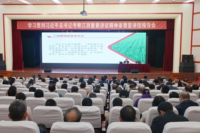 黃路生在主持報告會時指出,學習好、宣傳好、貫徹好習近平總書記考察江西重要講話精神,是當前和今后一個時期的重要政治任務,要以宣講報告為契機,在全校上下持續興起學習宣傳貫徹總書記考察江西重要講話精神的熱潮:一要認真學,確保學懂、學透、學會。要把學習習近平總書記考察江西重要講話精神納入校院兩級黨委理論學習中心組學習、黨支部專題學習、教職工政治理論學習、學生團支部專題學習,將學習習近平總書記重要講話精神與總書記關于教育、科技、人才和“三農”的重要論述結合起來學習,做到融會貫通一體化學習領會。二要深入講,確保入耳、入腦、入心。通過“領導干部帶頭講、深入基層集中講、形式多樣深入講”的全覆蓋宣講模式,在宣傳宣講上走深走實。三要扎實做,確保有效、實效、長效。要從習近平總書記的重要講話中找任務、找思路、找方法,以更加積極主動、擔當有為的姿態創造更多實實在在的工作成效和發展成果。