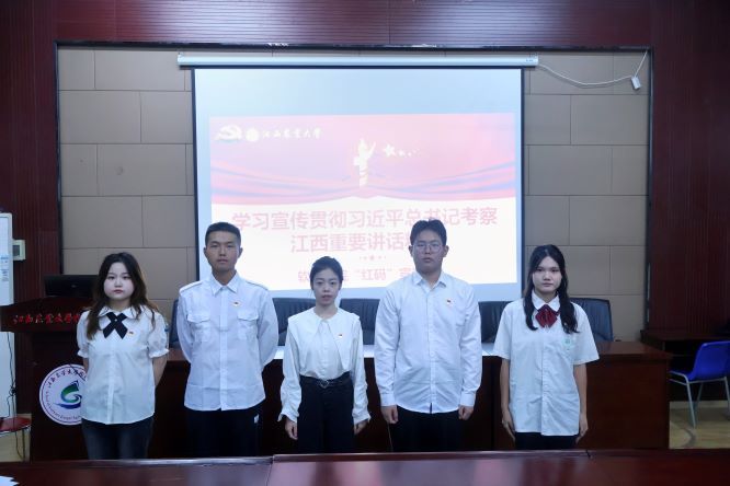 “習近平總書記時隔四年再次親臨江西考察,賦予江西發展‘走在前、勇爭先、善作為’的目標定位,是習近平新時代中國特色社會主義思想‘“江西篇’的豐富發展.....”11月8日晚,軟件學院“紅碼”青年宣講團正面向100余名入黨積極分子宣講習近平總書記考察江西重要講話精神。