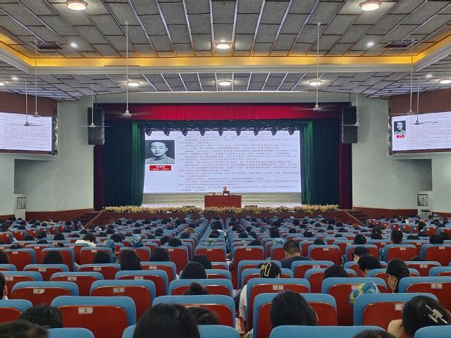 9月26日,外國(guó)語(yǔ)學(xué)院舉辦紅色主題黨課,南昌師范學(xué)院副院長(zhǎng)周毛春應(yīng)邀以《從革命先輩的英雄事跡看共產(chǎn)黨人的初心使命》為題,為師生們授課。外國(guó)語(yǔ)學(xué)院80余名教師及840名學(xué)生到場(chǎng)聆聽(tīng)。