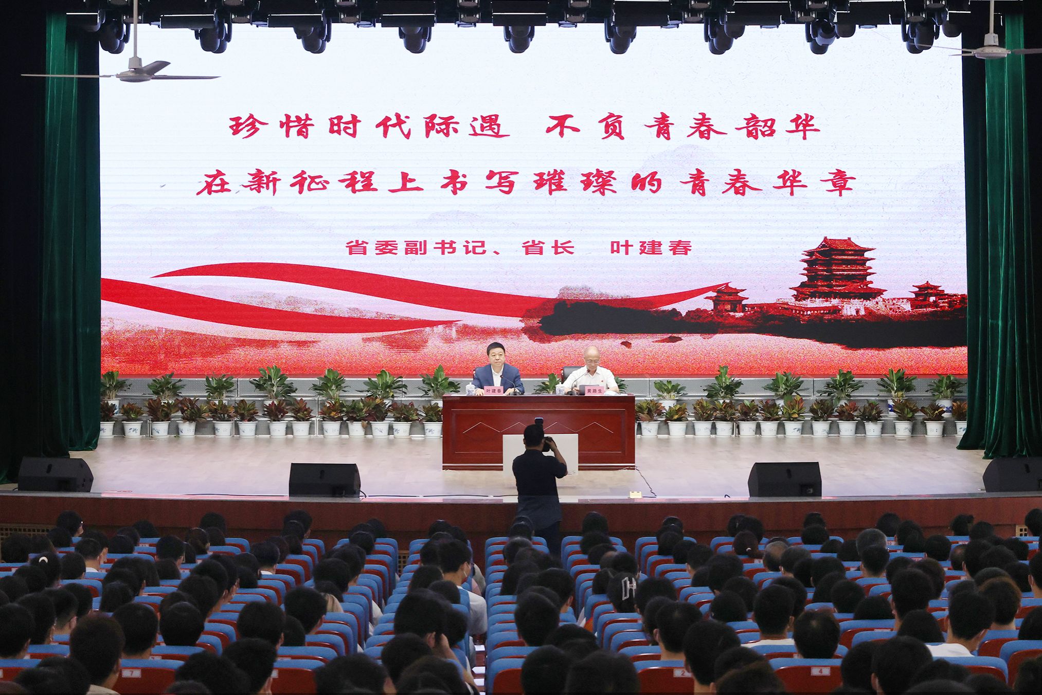 5月16日上午,省長葉建春為我校師生作形勢報告暨專題黨課。他勉勵青年學生從習近平新時代中國特色社會主義思想中汲取智慧和力量,從腳下的紅土地吸收深厚養(yǎng)分,珍惜時代際遇,不負青春韶華,勇擔責任使命,在新征程上書寫無愧于時代、無愧于歷史、無愧于人民的璀璨人生華章。葉建春根據青年學生認知特點,分偉大的變革、奮進的江西、青年的使命三個層次進行梳理分析,并對全省高校深入開展學習貫徹習近平新時代中國特色社會主義思想主題教育提出明確要求。
