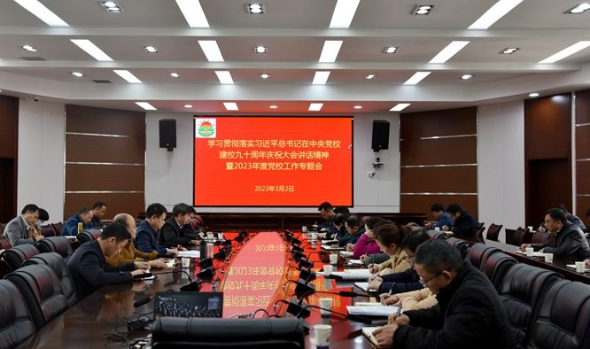 習近平總書記3月1日在中央黨校建校90周年慶祝大會暨2023年春季學期開學典禮上的重要講話,在我校各級黨委、黨員干部、黨校學員中引起強烈反響。3月2日上午,校黨委副書記蔡海生主持召開學習貫徹落實習近平總書記在中央黨校建校九十周年慶祝大會講話精神暨2023年度黨校工作專題會,學校二級學院黨委書記、黨支部書記、師生代表第一時間展開研討交流。