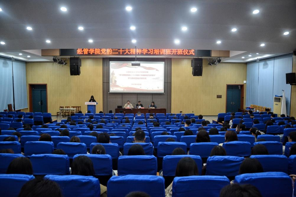 為貫徹落實(shí)學(xué)校《關(guān)于在全校黨員中開(kāi)展黨的二十大精神學(xué)習(xí)培訓(xùn)的通知》要求,進(jìn)一步提高學(xué)院學(xué)生黨員的政治素質(zhì)和理論水平,4月3日晚,經(jīng)管學(xué)院在東區(qū)E教207室舉辦“學(xué)習(xí)貫徹黨的二十大精神 爭(zhēng)做新時(shí)代好青年”專題培訓(xùn)班開(kāi)班儀式并舉辦首場(chǎng)報(bào)告會(huì)。學(xué)院黨委負(fù)責(zé)人、各學(xué)生黨支部書(shū)記、全體學(xué)生黨員共計(jì)300余人參加了開(kāi)班儀式。
