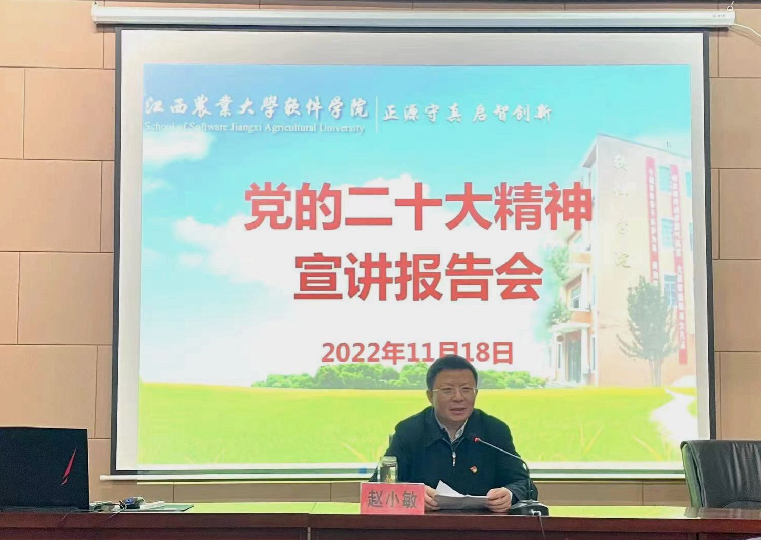 近日,校長趙小敏分別到工學院、軟件學院宣講黨的二十大精神。200余名師生黨員代表在會場仔細聆聽,認真筆記,現場學習氛圍濃厚。