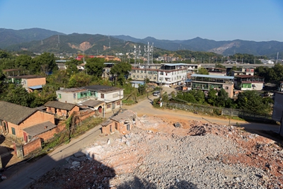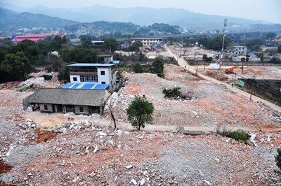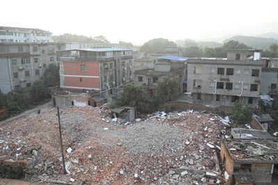 鄭家房屋建筑逐步拆除(周國平、袁甲/攝)。