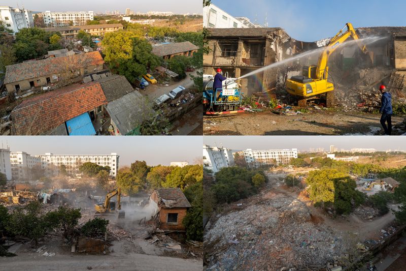 芭茅嶺小區占地面積約15畝,共有4棟44間(套)住房,屬學校原園藝實驗站70年代建設的公有住房,用于解決原園藝實驗站職工居住使用,見證了學校的風雨歷程、發展躍遷,承載著許多農大人的美好回憶。因年代久遠,該小區內房屋陳舊破敗,有私自搭建的廚房、茅廁、雞(鴨)舍、儲物房等100余處,菜地、棚子眾多,嚴重影響校園環境,存在重大安全隱患。2022年6月,學校啟動芭茅嶺老舊小區拆除工作,由資實處牽頭成立工作組,按照調查摸底、制定方案、住戶撤出、住房拆除四個階段,深化宣傳、強化服務、細化措施,用心用情用力做了大量卓有成效的工作,得到了原有住戶的廣泛理解支持,由“不愿意搬”變“主動配合搬”,為順利完成拆除奠定了堅實基礎。
