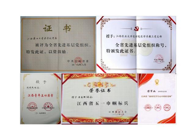 黨的十八大以來,農(nóng)學院黨委在“立交橋”、“谷成長”黨建理念和工作模式的導航下,組織建設(shè)取得了一系列成果。農(nóng)學院領(lǐng)導班子連續(xù)8年獲評江西農(nóng)業(yè)大學優(yōu)秀領(lǐng)導班子,學院黨委曾榮獲全省教育系統(tǒng)“創(chuàng)先爭優(yōu)先進基層黨組織”、“全省先進基層黨組織”稱號。2012年,學院植保系黨支部榮獲全省“高校先進基層黨組織”稱號;2019年,學院農(nóng)學系黨支部入選第二批新時代高校黨建示范創(chuàng)建和質(zhì)量創(chuàng)優(yōu)“全國黨建工作樣板支部”創(chuàng)建單位,2022年上半年已順利通過驗收,該支部獲評2021年“全省先進基層黨組織”稱號。農(nóng)學院教師榮獲“江西省五四青年”獎?wù)隆ⅰ靶聲r代贛鄱先鋒”、“新時代學生心中的好老師”、“五一巾幗標兵”、“感動江西教育年度人物”、“江西省鄉(xiāng)村振興青年先鋒”、“江西省優(yōu)秀科技特派員”、“全國南繁工作先進個人”、“全省糧食工作先進個人”、“全國模范教師”、“全國優(yōu)秀教師”、“江西省模范教師、教學名師”、“全省高校優(yōu)秀共產(chǎn)黨員”等省級及以上榮譽和稱號60余人次,作物遺傳育種團隊榮獲江西省委教育工委“工人先鋒號”稱號,作物生理生態(tài)與遺傳育種教育部重點實驗室榮獲“全國教育系統(tǒng)先進集體”稱號。2014年,學院黨員活動室獲評“江西省高校示范性黨員活動室”。