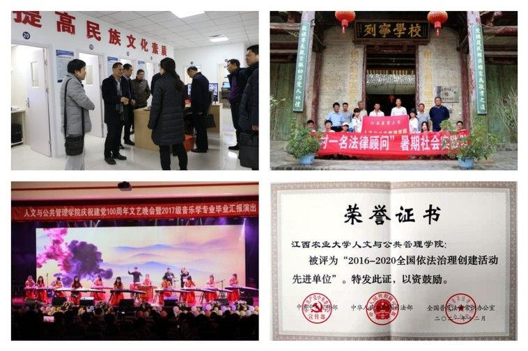 新時代以來的十年,是學院堅持社會服務,助力鄉(xiāng)村振興,拓展社會實踐育人成效的十年。十年來,學院每年組織開展暑期社會實踐活動,全國各地留下了學院師生服務社會的身影。學院先后榮獲獲得“全國暑期社會實踐先進營隊”、“全國志愿服務項目大賽銅獎”等省級以上榮譽10余項,一批學生獲得了全國和全省暑期社會實踐先進個人、省優(yōu)秀志愿者等榮譽稱號。十年來,學院在繁榮校園文化上做出了突出貢獻,每逢學校重大文藝活動,總是活躍著學院吹拉彈唱的文藝骨干。 十年來,支教、普法、推普等社會服務活動彰顯了學院的責任擔當。學院持續(xù)開展的農(nóng)村法律援助活動,為校地合作普法提供了“人文樣板”,“一村一名法律顧問 共育農(nóng)村法律明白人”農(nóng)村普法活動,獲得人民網(wǎng)等權(quán)威媒體關(guān)注。學院榮獲十三五普法工作”全國依法治理創(chuàng)建活動先進單位”。