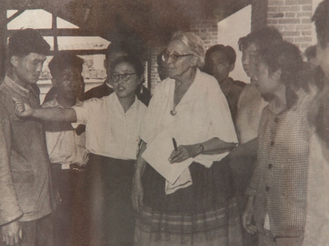 圖為1960年5月美國著名作家安娜?路易斯?斯特朗在共大云山分校考察采訪