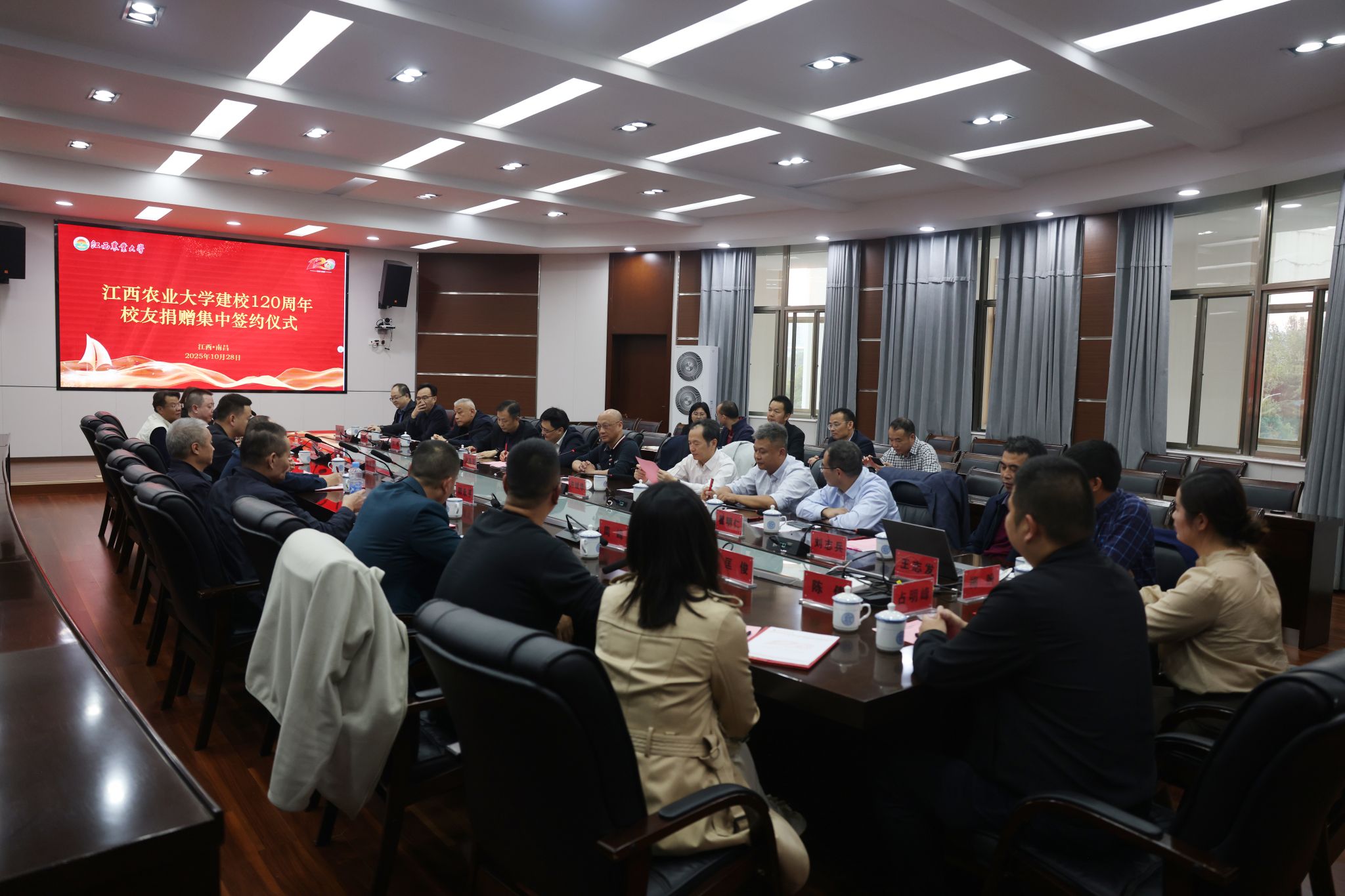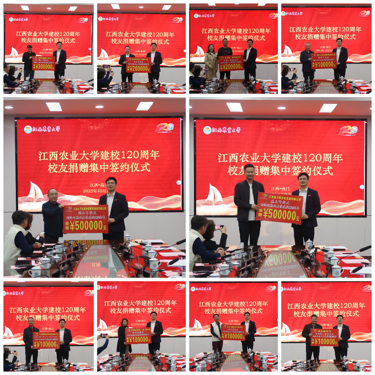 10月28日,我校舉行建校120周年校友集中捐贈(zèng)簽約儀式。校黨委書記黃路生院士、副校長(zhǎng)張高亮、原副校長(zhǎng)許斌華,參與集中捐贈(zèng)的校友,動(dòng)科院、職師院、籌備辦、校友工作服務(wù)中心負(fù)責(zé)人及相關(guān)人員參加儀式。