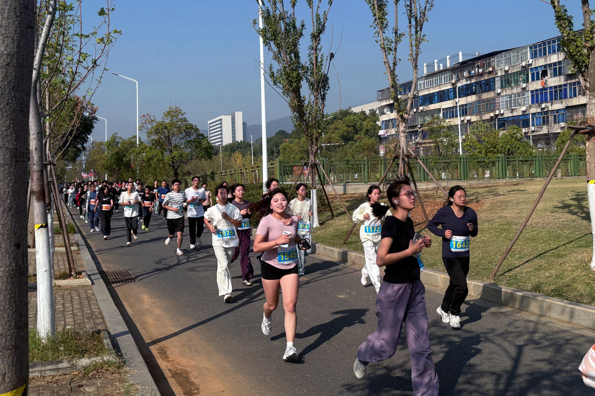 10點(diǎn)整,發(fā)令槍響,參賽選手們邁開輕盈的步伐,從先骕廣場(chǎng)出發(fā)。他們身姿矯健,奔跑在校園5.2公里的賽道上。賽道沿途設(shè)有多個(gè)補(bǔ)給點(diǎn),志愿者團(tuán)隊(duì)在關(guān)鍵節(jié)點(diǎn)全程值守,醫(yī)療服務(wù)隊(duì)也全程待命。他們以專業(yè)保障筑牢賽事安全防線,確保賽事平穩(wěn)有序。